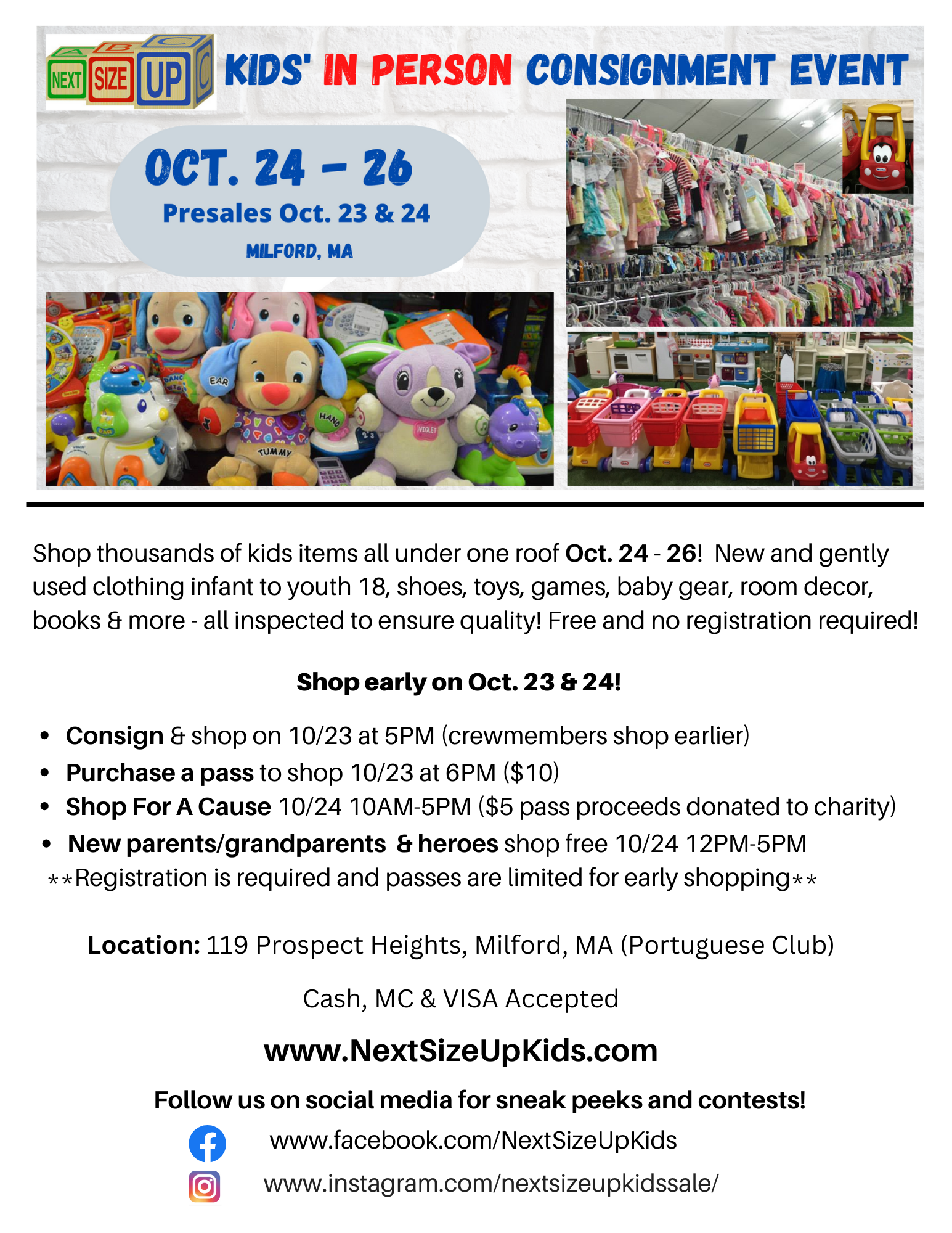 *Accepted all seasons (i.e. skates, etc. can be consigned at spring/summer sale)
